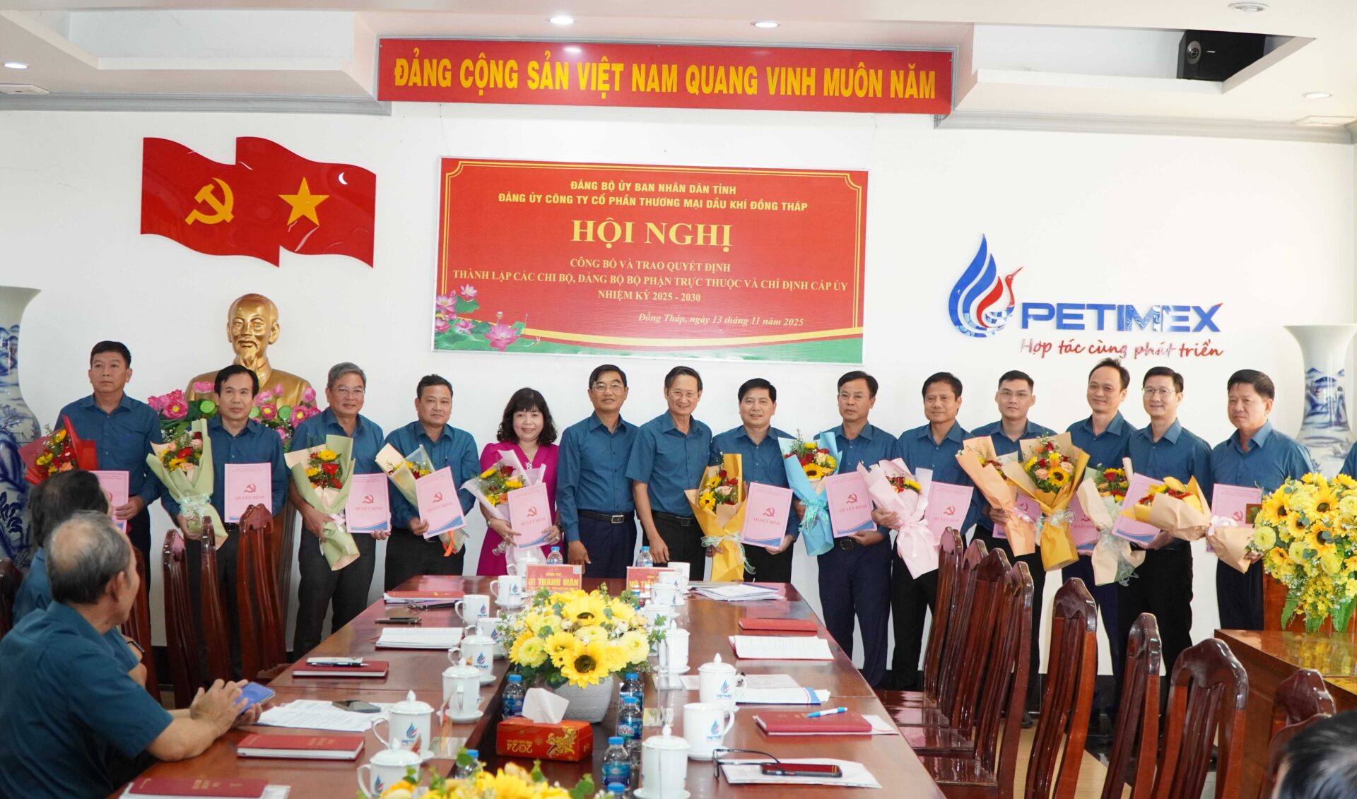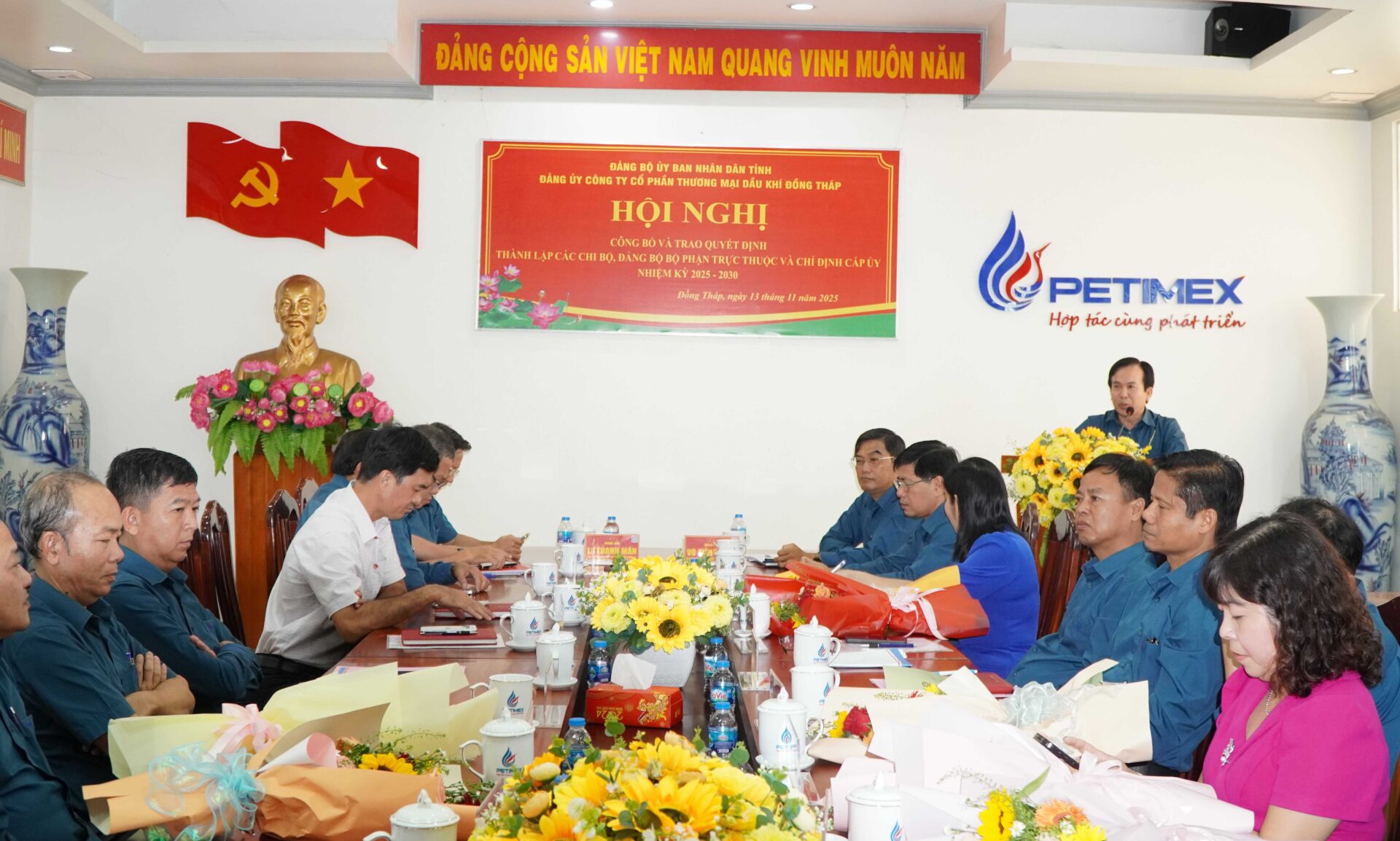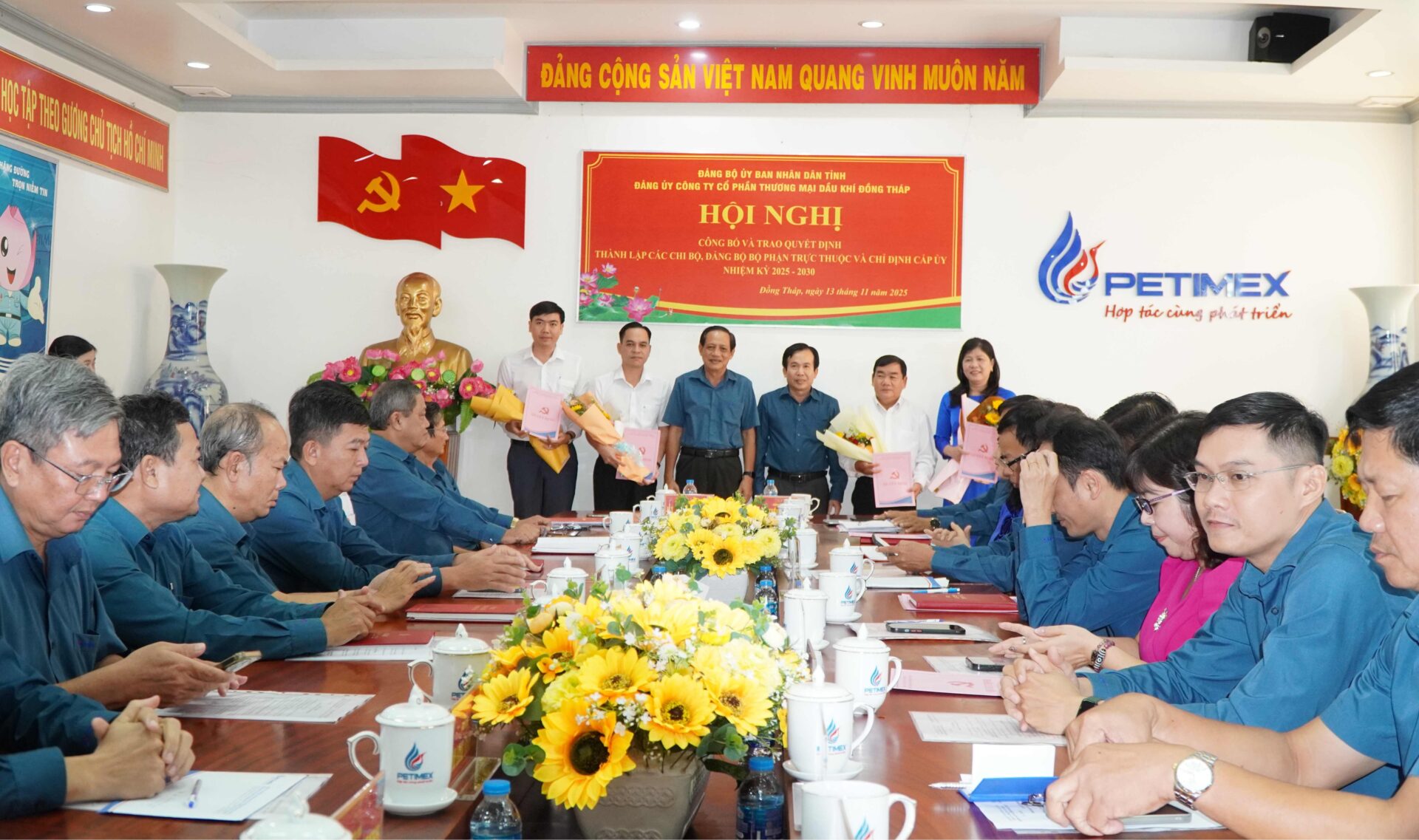 Chiều ngày 13/11/2025, tại Văn phòng Công ty cổ phần thương mại dầu khí Đồng Tháp (Petimex), Đảng bộ Công ty cổ phần thương mại Dầu khí Đồng Tháp đã long trọng tổ chức Hội nghị công bố và trao quyết định thành lập các chi bộ, đảng bộ bộ phận và cấp uỷ trực thuộc, nhiệm kỳ 2025 – 2030. Sự kiện đánh dấu bước phát triển và kiện toàn mạnh mẽ hệ thống tổ chức cơ sở Đảng, tạo nền tảng vững chắc cho việc thực hiện thắng lợi các mục tiêu nhiệm kỳ 2025-2030.