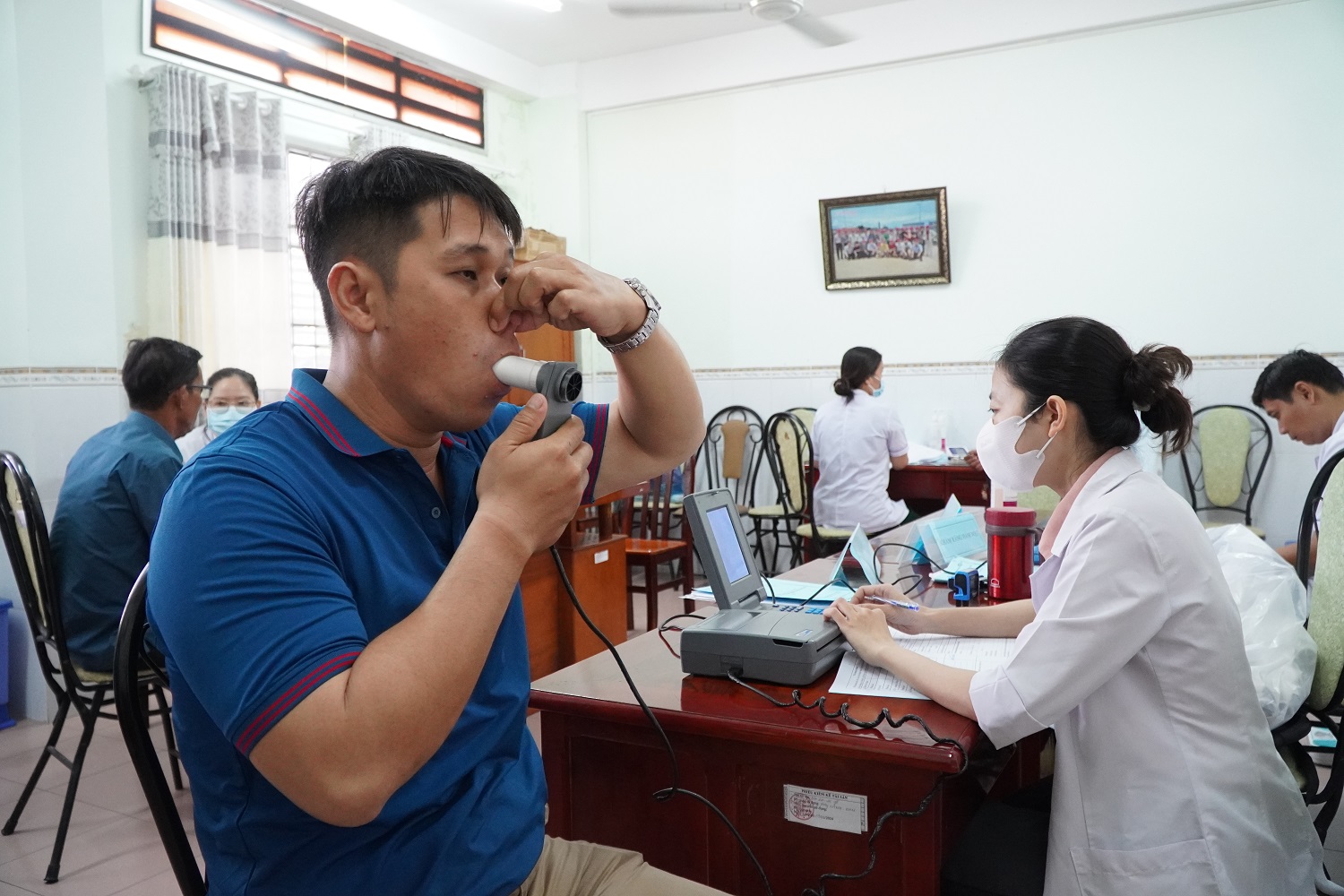 Nhân viên Khối lao động trực tiếp đang kiểm tra sức khỏe (Khám hô hấp)