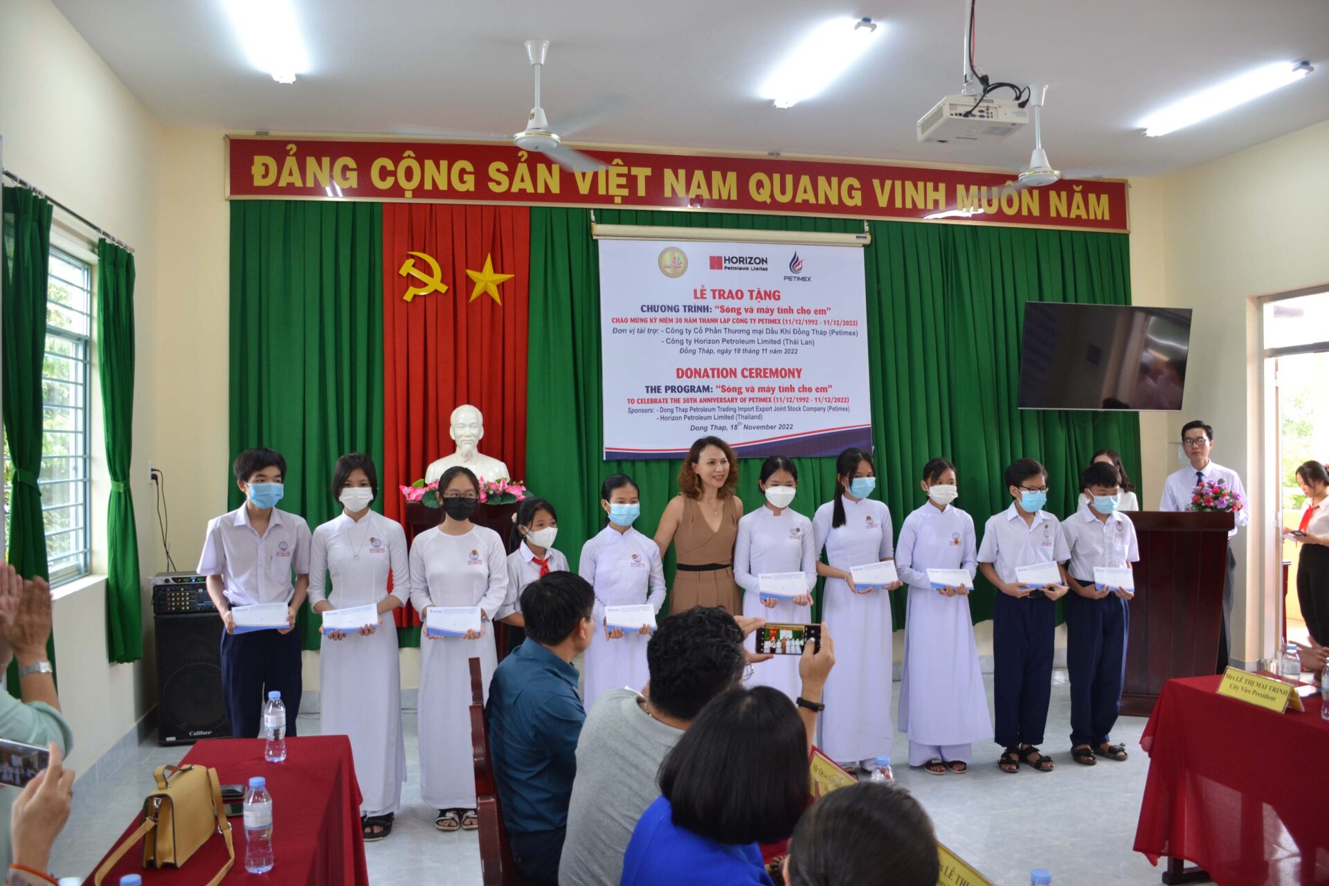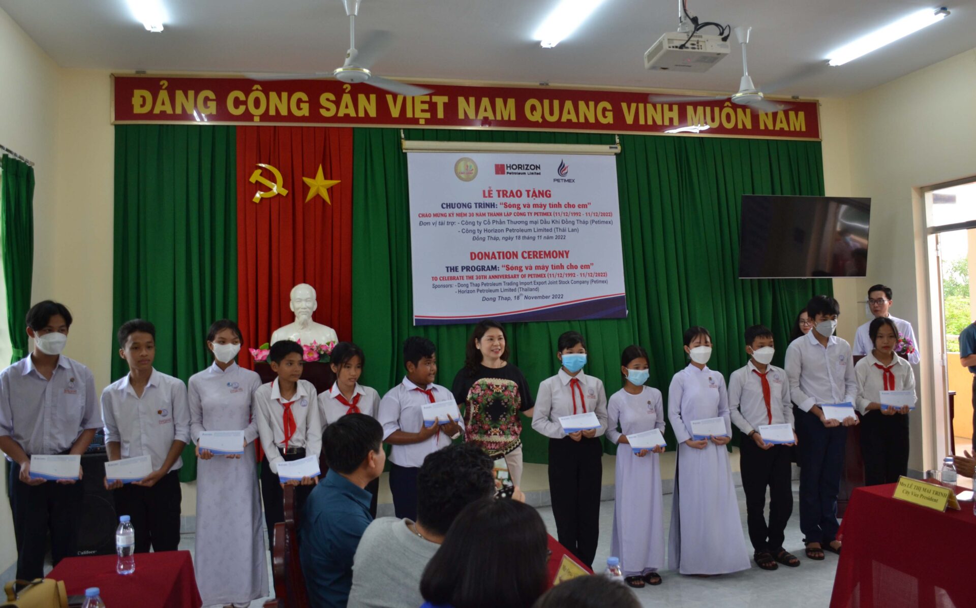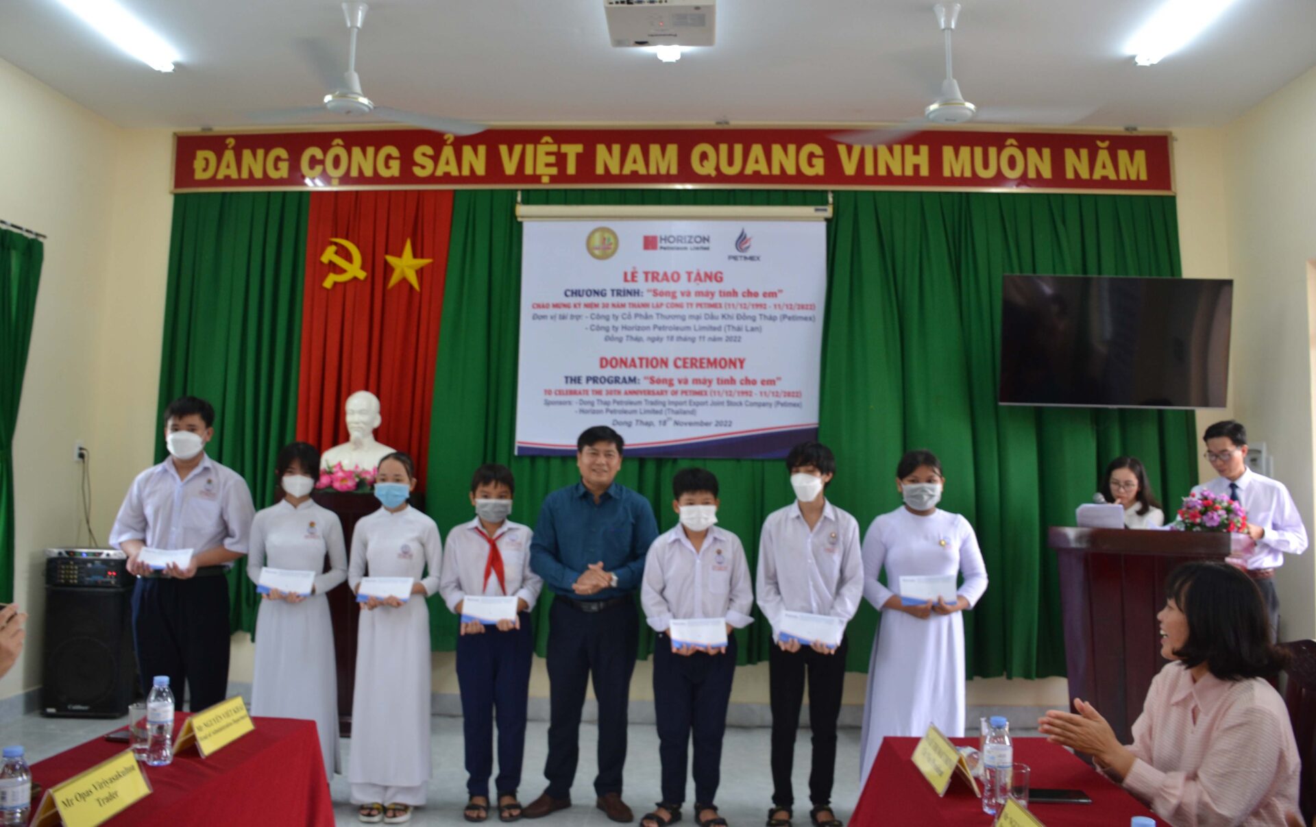 Nằm trong chuỗi các hoạt động chào mừng cho Lễ kỷ niệm 30 năm thành lập Công ty Petimex (11/12/1992 – 11/12/2022). Chiều ngày 18/11/2022, tại Trường trung học cơ sở Nguyễn Tú thuộc ấp 1 xã Mỹ Trà, TP Cao Lãnh, tỉnh Đồng Tháp. Công ty cổ phần thương mại dầu khí Đồng Tháp (Petimex) đồng hành cùng với Công ty Horizon Petroleum Limited (đến từ Thái Lan là đơn vị cung cấp xăng dầu cho Petimex tại thị trường Việt Nam) phối hợp với UBND Thành phố Cao Lãnh, tỉnh Đồng Tháp thực hiện chương trình “Sóng và máy tính cho em” tặng 10 bộ máy vi tính và 40 suất học bổng cho học sinh có hoàn cảnh khó khăn cho trường THCS Nguyễn Tú, trị giá 120 triệu đồng. Cũng trong buổi chiều cùng ngày tại xã An Bình, huyện Cao Lãnh tỉnh Đồng Tháp, phối hợp với Mặt trận tổ quốc Việt Nam tỉnh trao 02 căn nhà đại đoàn kết cho gia đình có hoàn cảnh khó khăn trị giá 100 triệu đồng.